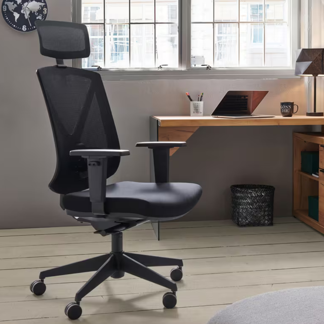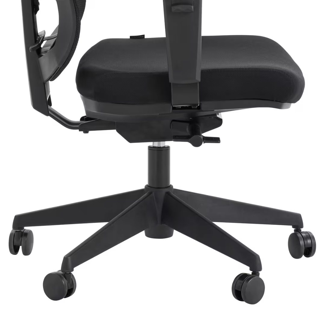 Kancelarijska stolica RYAN izrađena je od kombinacije plastike, tekstila i mrežaste navlake.