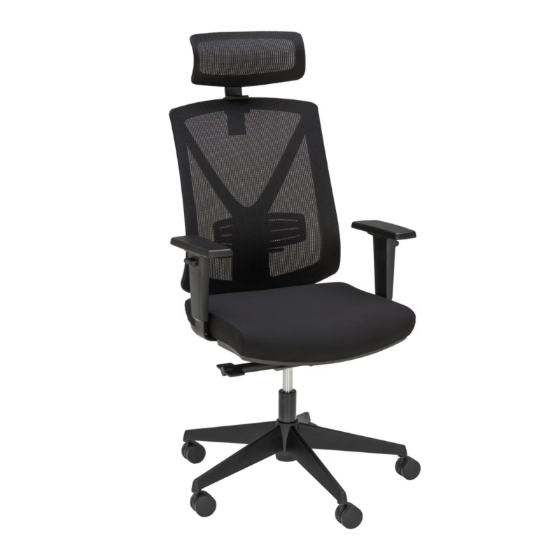 Kancelarijska stolica RYAN izrađena je od kombinacije plastike, tekstila i mrežaste navlake.